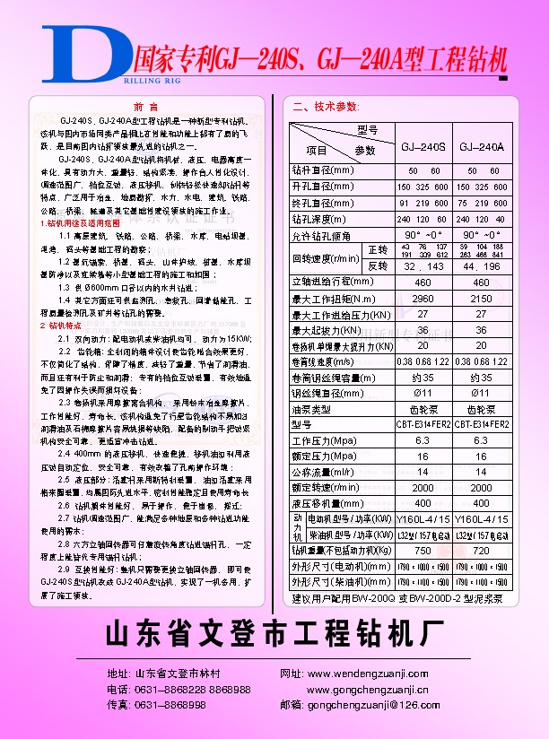 GJ-240A型鉆機(jī)的特點