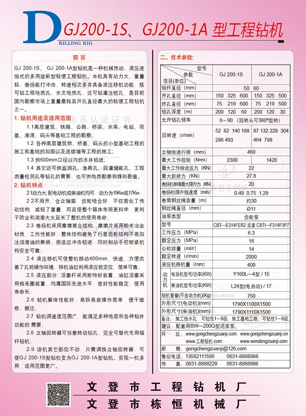 GJ200-1S型鉆...